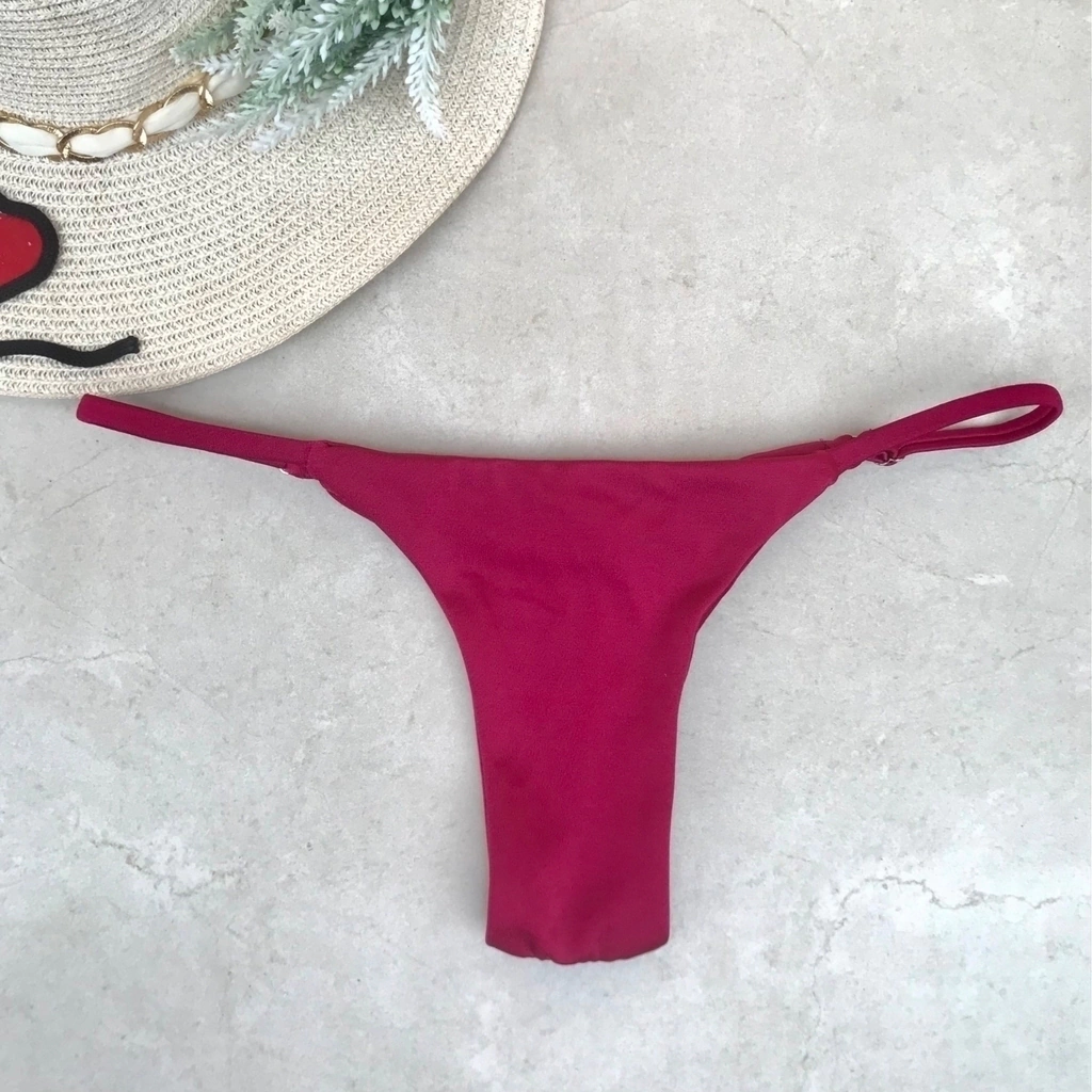 Calcinha tira fina com empina bumbum fio duplo, e regulagem nas laterais.